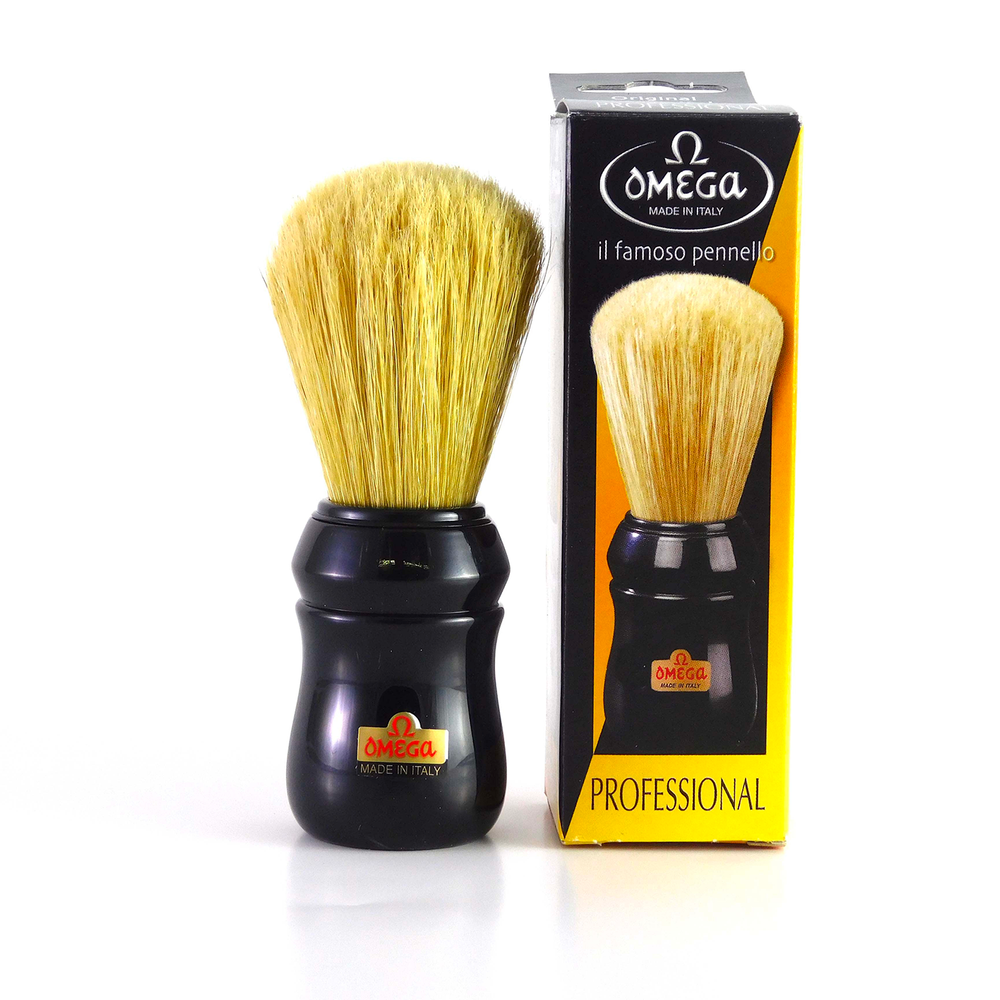 il classico pennello da barba omega 49 con manico plastificato e setole lunghe. il preferito dal barbiere!