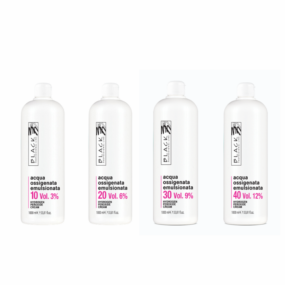 Acqua ossigenata emulsionata , dalla consistenza fluida e cremosa, favorisce il rilascio graduale dell’ossigeno, consentendo colorazioni e decolorazioni impeccabili e omogenee. L’emulsione ossidante Black Professional garantisce una condizione di utilizzo sicura ed efficiente, preservando il benessere del colorista e della cliente sottoposta al servizio tecnico.
